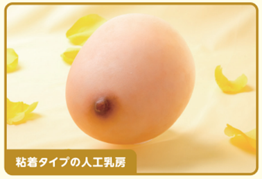 再建術を希望されていても、何らかの理由で手術ができないかたは少なからずいらっしゃいます。あるいは、再建でさらなる手術をしたくないけれど普段の生活で見た目の補整をしたいとご相談に来られるかたもいます。人工乳房は直接、体に貼り付けられ、前かがみになったときなどに体から離れないことと、本物のお肌そっくりに着色されている点で従来のパッドと大きく異なる商品です。